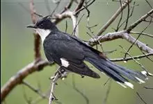 斑翅凤头鹃: 成鸟具羽冠,上体及头侧、翅、尾等黑色,具铁绿色亮辉,尾羽端部具白斑,两侧者形宽,中央者较狭;下体白色、淡灰白或略带棕黄色。虹膜褐至红褐色;嘴黑色;脚灰蓝黑色。…全部>>