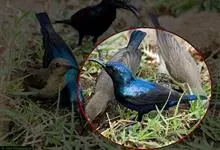 褐翅鸦鹃,是鹃形目鸦鹃科鸦鹃属的鸟类。褐翅鸦鹃的身体为黑色;头颈和胸带蓝紫色金属光泽并具黑亮的羽干纹,下胸至腹部泛金属绿光泽;两翼和肩部为棕栗色,外侧飞羽具暗色羽端,尾羽闪铜绿色光泽;虹膜赤红色,…全部>>