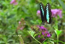 青带凤蝶Graphium sarpedon ,又名青凤蝶,是最普遍的中型凤蝶,飞行速度很快。青带凤蝶的翅膀中央有许多浅蓝色的斑点,很整齐地排列成一条直线。这些斑点由上而下逐渐变大,就像一条青色的带子。全部>>