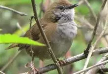 斑胸短翅莺:小型鸟类,体长11-13厘米。上体暗赭褐色,眉纹灰白;下体白色,下喉至上胸具灰褐点斑,很显著;腹部中央灰白色。虹膜褐色;嘴黑色;脚淡灰角色,爪角褐色。…全部>>