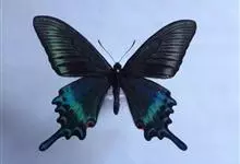 绿带翠凤蝶,又名深山凤蝶,为凤蝶科凤蝶属下的一种。分布于韩国、日本、中国台湾、中国大陆等地。翅黑色,满布金绿色鳞片。前翅亚缘具黄绿色横带纹。后翅外缘有6个略呈新月形的红斑,…全部>>