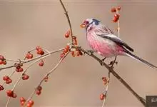 长尾朱雀:体长18厘米,体重16-26克。雄鸟额、颏和眼后为暗红色,头顶与后颈的羽端较淡;翼羽具宽阔的白色边缘与先端;形成鲜明的翼斑;外侧尾羽白色,嘴短粗呈膨胀状;雌鸟无红色,头、颊到翕带灰色,…全部>>