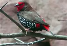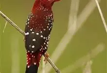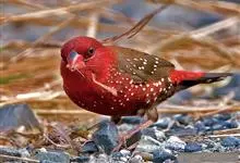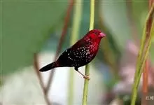 红梅花雀小型鸟类,体长9-10厘米。雄鸟通体朱红色,背、肩、胸等满布白色小斑点,两翅和尾黑褐色均具白色端斑,嘴红色,脚蜡黄色。雌鸟上体淡褐色或赭褐色,翅上中覆羽、大覆羽和内侧飞羽末端具白色斑点,…全部>>