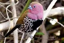 斑胸草雀,又名金山珍珠,是雀形目梅花雀科的小型鸟类。该鸟全长10厘米左右,胸和尾羽有黑白斑纹,雄鸟胁部棕红色有白色点斑,除原色种外羽色全白的亦较常见;主要以禾本科植物的种子为食,鸣声低,原产于印度尼…全部>>