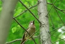 大噪鹛:中型鸟类,体长32-36厘米。额至头顶黑褐色,背栗褐色满杂以白色斑点,斑点前缘或四周还围有黑色。初级覆羽、大覆羽和初级飞羽具白色端斑。尾特长,均具黑色亚端斑和白色端斑。颏、喉棕褐色,…全部>>