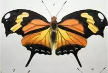 黑脉金斑蝶:翅阔8.6-12.4厘米。雄蝶较雌蝶为大。成年蝶颜色鲜艳,翅膀上有显眼的橙色及黑色斑纹,周围是宽阔的黑色边框,布有许多白色斑点。这种引人注目的着色是对捕食者的视觉警告,表示这个物种有毒;…全部>>