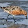 红腹滨鹬,是鹬科、滨鹬属的小型涉禽,体长23-25厘米,嘴较短而直、黑色,脚亦甚短、绿色。体较粗胖。夏季上体灰褐色具黑色中央纹,背具棕栗色和白色斑纹和羽缘,头侧和整个下体栗红色。冬季棕红色消失,…全部>>