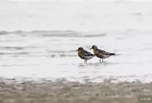 黑腹滨鹬是鹬科滨鹬属鸟类。小型涉禽,体长16-22厘米。嘴黑色、较长,尖端微向下弯曲,脚黑色。 夏季背栗红色具黑色中央斑和白色羽缘。眉纹白色。下体白色,颊至胸有黑褐色细纵纹。腹中央黑色,呈大型黑斑。…全部>>