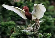 池鹭,是鹈形目鹭科池鹭属鸟类。繁殖期头及颈深栗色,胸酱紫色;非繁殖期背部褐色,头、颈、上胸部具褐色纵纹,下腹部及翼为白色;嘴基黄而尖端黑色,跗趾黄色。非繁殖期飞行时因白色的腹部和飞羽,易与白鹭混淆,…全部>>