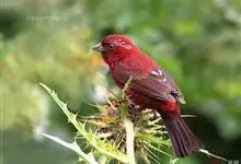 普通朱雀是雀形目雀科朱雀属鸟类,又名红朱雀、马料、青麻料。雄鸟上体红色,下体淡红色;头部、喉部、胸部及腰部亮红色;背部褐色染红色;两翼及尾黑褐色,羽缘染红色。雌鸟上体橄榄褐色,下体近白色,…全部>>
