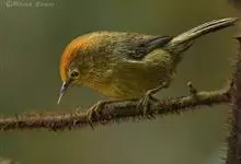 金头穗鹛小型鸟类,体长10~11厘米,是一种黄色小鸟。头顶金黄色有黑色纵纹,眼先黑色,在头、颊和耳羽金黄色的衬托下亦甚醒目。上体橄榄黄色,下体亮黄色,腹和两胁沾绿。…全部>>