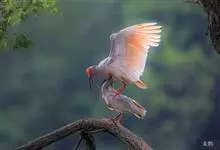 朱鹮是鹈形目鹮科朱鹮属的鸟类动物。其雄鸟通体白色,羽干及两翅与尾等均沾染粉红色;颈项上有很多长矛状羽毛,形成羽冠,耸立时非常夺目;嘴长而向下曲,呈黑色,先端朱红,脚的裸露部分亦呈亮红色。雌鸟羽色略同,…全部>>