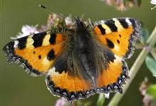 黑脉金斑蝶:翅阔8.6-12.4厘米。雄蝶较雌蝶为大。成年蝶颜色鲜艳,翅膀上有显眼的橙色及黑色斑纹,周围是宽阔的黑色边框,布有许多白色斑点。这种引人注目的着色是对捕食者的视觉警告,表示这个物种有毒;…全部>>