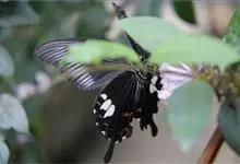 玉斑凤蝶Papilio helenus 别名白纹凤蝶,是凤蝶科凤蝶属美凤蝶亚属大型种类。雌雄同型;体翅皆黑色,后翅正面中室外有3个并列的白色斑,亚外缘有1列模糊的新月形红色斑,…全部>>