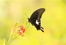 玉斑凤蝶Papilio helenus 别名白纹凤蝶,是凤蝶科凤蝶属美凤蝶亚属大型种类。雌雄同型;体翅皆黑色,后翅正面中室外有3个并列的白色斑,亚外缘有1列模糊的新月形红色斑,…全部>>