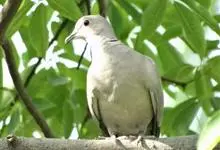 珠颈斑鸠,别名花斑鸠、珍珠鸠、花脖斑鸠、鸪鹪,是鸠鸽科副斑鸠属鸟类。体型中等,体长27~34cm,体重120~205g,雌鸟和雄鸟羽色相似,但雌鸟不如雄鸟羽色亮泽。珠颈斑鸠前额至头顶羽色稍淡,…全部>>