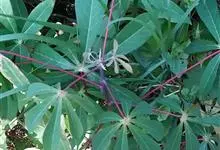 木薯,为大戟科木薯属的一种直立灌木,又名木番薯、树薯。木薯高1.5-3米;块根圆柱状。叶纸质,轮廓近圆形;裂片倒披针形至狭椭圆形;托叶三角状披针形。圆锥花序顶生或腋生,花萼带紫红色且有白粉霜。…全部>>