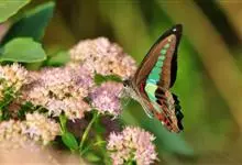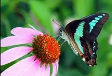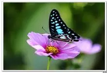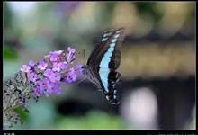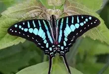 青带凤蝶Graphium sarpedon ,又名青凤蝶,是最普遍的中型凤蝶,飞行速度很快。青带凤蝶的翅膀中央有许多浅蓝色的斑点,很整齐地排列成一条直线。这些斑点由上而下逐渐变大,就像一条青色的带子。全部>>