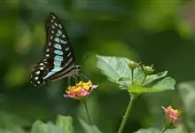 青带凤蝶Graphium sarpedon ,又名青凤蝶,是最普遍的中型凤蝶,飞行速度很快。青带凤蝶的翅膀中央有许多浅蓝色的斑点,很整齐地排列成一条直线。这些斑点由上而下逐渐变大,就像一条青色的带子。全部>>
