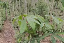 木薯,为大戟科木薯属的一种直立灌木,又名木番薯、树薯。木薯高1.5-3米;块根圆柱状。叶纸质,轮廓近圆形;裂片倒披针形至狭椭圆形;托叶三角状披针形。圆锥花序顶生或腋生,花萼带紫红色且有白粉霜。…全部>>