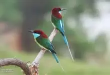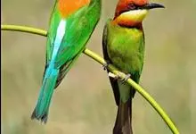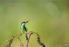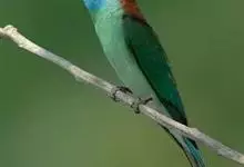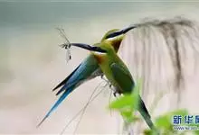 蓝颊蜂虎:是蜂虎科、蜂虎属的鸟类,共有2个亚种。体长27-33厘米,翼展46-49厘米,体重38-50克。嘴形细长而下弯,先端尖,…全部>>