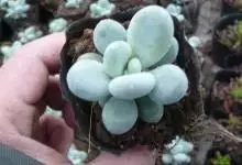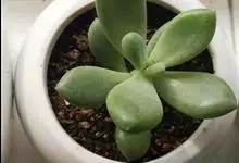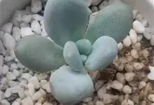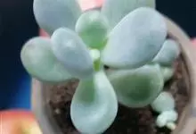星美人是景天科、厚叶莲属多年生多浆肉质草本植物。植株具直立的短茎。叶12-20片互生,排列呈延长的莲座状,肉质,倒卵形,长2-4厘米,宽2-2.5厘米,厚2厘米,先端平滑钝圆,…全部>>