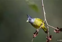 凤头雀嘴鹎:属小型鸟类,体长18-22厘米。嘴粗短、呈象牙色或乳黄色,前额和脸灰色,头顶黑色,有一朝前竖立的黑色羽冠。上体橄榄绿色,下体黄绿色,尾羽黄绿色具宽阔的黑褐色端斑。…全部>>