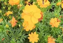 黄秋英是菊科秋英属的一年生草本植物。枝叶为对生的二回羽状复叶,裂片呈披针形;花为舌状花,有单瓣和重瓣两种,颜色多为黄、金黄、橙色,红色;瘦果棕褐色,粗糙有毛,顶端有细长喙;春播花期6-8月,…全部>>
