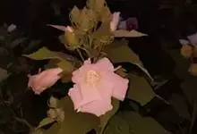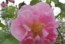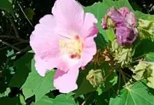 木芙蓉,锦葵科木槿属落叶灌木或小乔木。小枝上有细绒毛;叶片为卵状心形,托叶为披针形,常早落;花单生,花萼为钟形,花冠初为白色或淡红色,后逐渐变为深红色;果实为扁球形,有淡黄色的毛附着。花期8到10月。…全部>>