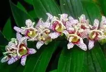 莲瓣兰是兰科、兰属植物。莲瓣兰为细长的线形,叶片质地较软,稍革质化,弓形弯垂,长35-60厘米,宽0.4-0.6厘米。叶基部有稍膨大的假鳞茎可储存水分和养分,根为圆柱状肉质根,直径0.5-1厘米,…全部>>