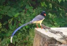 红嘴蓝鹊(赤尾山鸦、长尾山鹊)鸣禽亚目 > 鸦科 > 蓝鹊属 > 红嘴蓝鹊