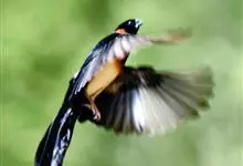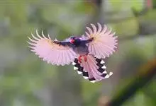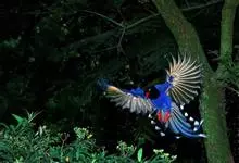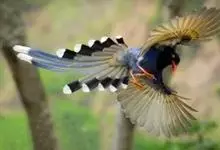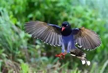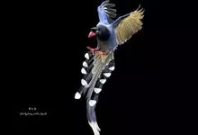 台湾蓝鹊:体长64至65厘米,翼展18至21厘米,尾长约40厘米,尾羽长占了总体长的三分之二。头、脸、颈、喉、胸都是黑色,黄色的眼珠包围黑色的瞳孔,鲜红色的鸟喙、双脚,…全部>>