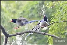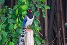 红嘴蓝鹊,别名山鹊、长尾鹊,是鸦科蓝鹊属的一种观赏性较强的大型鸣禽。该物种为体长54~65cm,头、颈、喉和胸黑色,头顶至后颈有一块白色至淡蓝白色或紫灰色块斑,其余上体紫蓝灰色或淡蓝灰褐色。尾长呈凸状,…全部>>