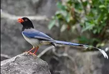 红嘴蓝鹊(赤尾山鸦、长尾山鹊)鸣禽亚目 > 鸦科 > 蓝鹊属 > 红嘴蓝鹊