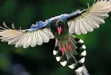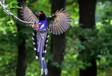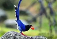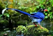 台湾蓝鹊:体长64至65厘米,翼展18至21厘米,尾长约40厘米,尾羽长占了总体长的三分之二。头、脸、颈、喉、胸都是黑色,黄色的眼珠包围黑色的瞳孔,鲜红色的鸟喙、双脚,…全部>>