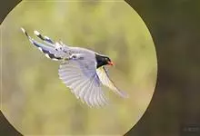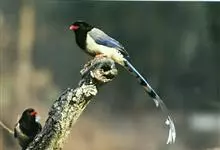 红嘴蓝鹊,别名山鹊、长尾鹊,是鸦科蓝鹊属的一种观赏性较强的大型鸣禽。该物种为体长54~65cm,头、颈、喉和胸黑色,头顶至后颈有一块白色至淡蓝白色或紫灰色块斑,其余上体紫蓝灰色或淡蓝灰褐色。尾长呈凸状,…全部>>