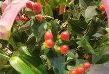 红果金丝桃,园艺栽培品种,属于被子植物门木兰纲金虎尾目金丝桃科金丝桃属。学名:Hypericum × inodorum ‘Excellent Flair’常绿灌木,高1.2米。单叶对生,无柄,椭圆形,…全部>>