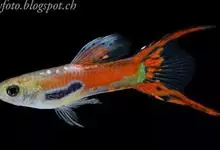 孔雀花鳉 ,俗名孔雀鱼,也称为凤尾鱼、彩虹花鳉、虹鳉、古比鱼等,是花鳉科花鳉属的一种热带鱼,雌雄鱼的体型和色彩差别较大,成年雄鱼身体瘦小,体长3-4厘米,体色绚烂多彩、体型优美;成年雌鱼体长5厘米…全部>>
