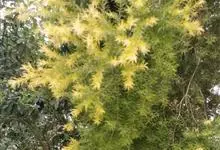 黄金串钱柳是桃金娘科白千层属常绿乔木植物。其树干暗灰色,树皮不易剥落;具油腺点,香味浓郁;叶革质互生,披针形或狭长圆形,两端尖;叶色全年金黄至鹅黄色;枝条细长,柔软且韧性好;穗状花序生于枝顶;花白色,…全部>>