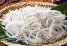 银鱼科,动物尖头银鱼、长鳍银鱼的全体。银鱼又称银条鱼、面条鱼。分布于我国山东至浙江沿海。洗净鲜用或晒干备用。银鱼是极富钙质、高蛋白、低脂肪食的鱼类,基本没有大鱼刺,适宜小孩子食用。据现代营养学分析,…全部>>