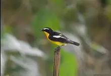 白眉姬鹟是小型鸟类,体长11-14厘米。雄鸟上体大部黑色,眉纹白色,在黑色的头上极为醒目。腰鲜黄色,两翅和尾黑色,翅上具白斑。下体鲜黄色。雌鸟上体大部橄榄绿色。腰鲜黄色,翅上亦具白斑。下体淡黄绿色。…全部>>