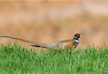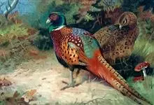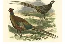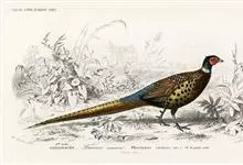 环颈雉是雉科、雉属的一种走禽,共有30个亚种。体重900-1050克,体长53-89厘米。体型较家鸡略小,但尾巴却长得多。雄鸟和雌鸟羽色不同,雄鸟羽色华丽,多具金属反光,…全部>>