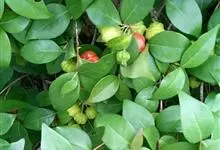 红果仔是桃金娘科番樱桃属的灌木或小乔木。株高可达5米,全株无毛;枝条纤细,稍下垂;叶对生,卵形或卵状披针形,先端渐尖或急尖,基部圆或微心形;花白色,单生或数朵呈聚伞状生于叶腋,…全部>>