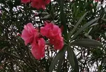 夹竹桃,又名红花夹竹桃、欧洲夹竹桃,是夹竹桃科夹竹桃属的一种常绿直立大灌木,枝条灰绿色,含水液。叶披针形,3叶轮生。聚伞花序顶生,花冠粉红至深红色,花冠漏斗状,有特殊香味。蓇葖果,圆柱形。种子长圆形,…全部>>