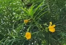 黄花夹竹桃K. Schum.),又名“酒杯花”“柳木子”“黄花状元竹”,是夹竹桃科,黄花夹竹桃属下的常绿乔木植物。高达5m,全株无毛,树皮棕褐色;叶互生,近革质,线形或线状披针形;花大,黄色,具香味,…全部>>
