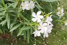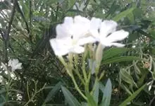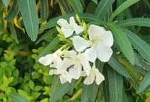 白花夹竹桃是夹竹桃科、夹竹桃属植物夹竹桃的栽培品种。常绿直立大灌木,枝条灰绿色;嫩枝条具稜,被微毛,老时毛脱落。叶3-4枚轮生,下枝为对生,叶面深绿,叶背浅绿色;侧脉纤细平行与中脉成直角;叶柄扁平,…全部>>