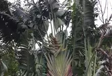 旅人蕉是鹤望兰科旅人蕉属的常绿乔木状多年生草本植物。茎似棕榈;树干直立丛生,圆柱形像棕榈,表面粗糙且干纹明显,外形像一把大折扇;叶长圆形,外形像蕉叶,叶片排列于茎顶形似大折扇;花为穗状花序腋生,…全部>>