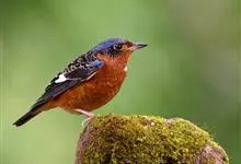 栗腹矶鸫是鸫科、矶鸫属小型鸟类,体长20-25厘米。雄鸟上体呈辉亮的钴蓝色,两翅黑褐色,喉蓝黑色,其余下体栗红色。雌鸟上体橄榄褐色,背具黑色鳞状斑,下体棕白色密杂以黑褐色横斑,黑白相衬,极为醒目,…全部>>