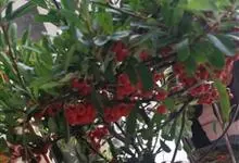 火棘 H. L. Li)是蔷薇科火棘属常绿灌木,老枝呈暗褐色;叶片呈倒卵形,边缘有钝锯齿,齿尖向内弯,两面皆无毛;叶柄短,无毛或嫩时有柔毛;花序是复伞房状,花瓣呈白色近圆形;果球近圆形,…全部>>
