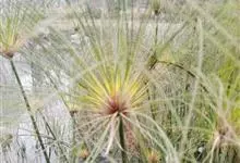 纸莎草是莎草科、莎草属的植物,具有粗壮的根状茎,高达2-3米,茎秆簇生,粗壮,直立,钝三棱形。叶退化呈鞘状,茎秆顶端着生总苞片,呈伞状簇生,总苞片叶状,披针形,顶生花序伞梗极多,细长下垂。瘦果灰褐色,…全部>>